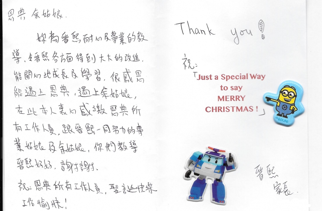 admin2020-05-06 05:56:262021-04-01 15:44:39感激特殊幼兒導師余姑娘、臨床心理學家、言語治療師、職業治療師